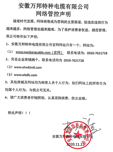 鄭重聲明:安徽萬邦特種電纜有限公司官方網站為:www_wanbangcable_com.livemx.com.cn,除此之外無任何子網站或合作網站,其余均為假冒偽劣。電話:0550-7621728 13485756353 地 址:安徽省天長市滁州高新技術產業開發區經四路29號